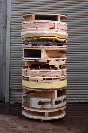 Pictured here in the Recology sculpture garden. Redwood, hardware, house paint; 52.75” x 35.75” x 65.25”